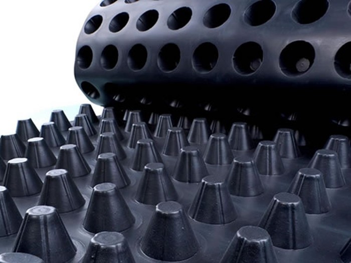 防排水保護板都有的凹凸式中空立筋結(jié)構(gòu),可以快速有效導(dǎo)出雨水,大大減少甚消除防水層的靜水壓,通過這種主動導(dǎo)水原理可以達到主動防水的效果。