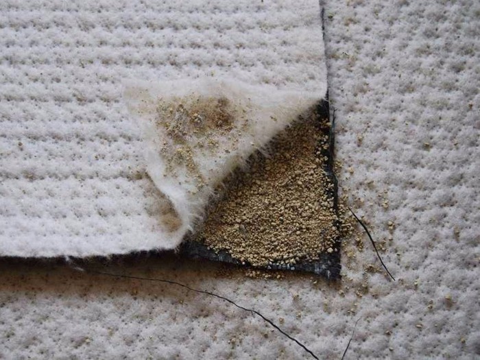 膨潤防水毯是一種用于人工湖泊水景、垃圾填埋場、地下車庫、樓花園、水池、油庫化學品堆場等防滲漏的土工合成材料,它是由高膨脹性的鈉基膨潤土填充在特制的復合土工布和無紡布之間,用針刺法制成的膨潤土防滲墊可形成許多小的纖維空間,是膨潤土顆粒不能像一個方向流動,遇水時在墊內形成均勻高密度的膠狀防水層,有效的防止水的滲漏。膨潤土防水毯按生產工藝可分為:針刺法鈉基膨潤土防水毯、針刺覆膜法鈉基膨潤土防水毯以膠粘法鈉基膨潤土防水毯。  針刺覆膜法鈉基膨潤土防水毯,是在針刺鈉基膨潤土防水毯的非織造土工布的外表面上復合一層高密度聚乙烯土工膜。